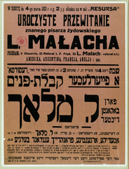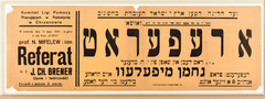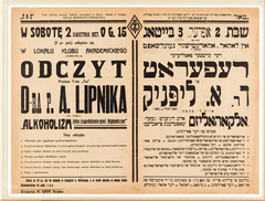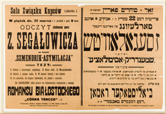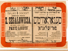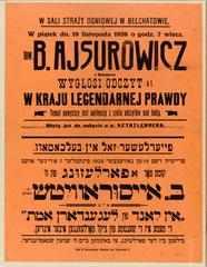 Bialystok. Announcement of a lecture by Yiddish author Zusman Segalowicz.