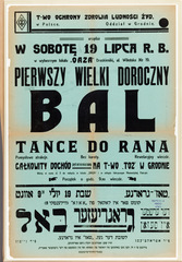 Grodno. Announcement of a Gala Ball to benefit the Jewish Hospital.