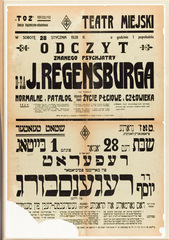Grodno. Announcement of a lecture, by psychiatrist Dr. Jozef Regensburg.