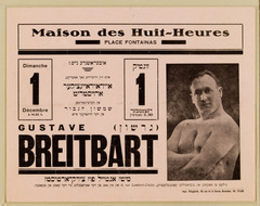 Antwerp. Announcement of a single engagement by Polish-Jewish strongman Gustaw (Gershon) Breitbart.