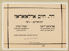 Chrzanow. Obituary announcement for the Labor Zionist leader, Dr. Chaim Arlosoroff, [1934].