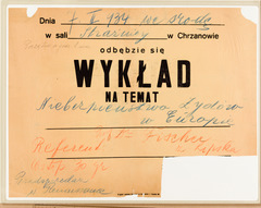 Chrzanow. Announcement of an [anti-Semitic?] lecture.
