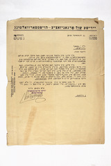 Letter from TSYSHO, the Central Yiddish School Organization in Warsaw to Jacob Shatzky