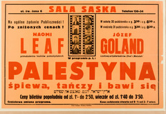 Krakow. "Palestine sings, dances and plays." Program with Naomi Leaf and Jozef Goland. No date.