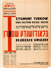Warsaw. "Blonzhende Shtern" (Wandering Stars). Play in 3 acts, written by Marek Razumny, based on Sholem Aleichem's novel.
