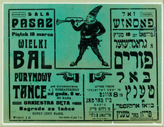 Vilna. A grandiose Purim ball, with buffet, in the Pasaz Hall. March 18th.