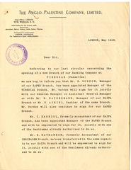 Letter from the Anglo-Palestine Company in London to Isaac Leib Goldberg in Vilna