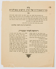 Printed materials, posters, correspondence, and fragmentary personal papers and records of institutions related to Polish Jewish life before WWII