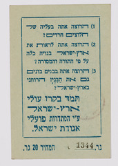 "Jews leaving for the Land of Israel"/"The Gypsy" (RG 1100.12.1)
