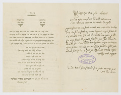 Papers of a badkhen (wedding entertainer), including rhymed wedding songs, bar mitzvah speeches, tombstone epitaphs, a notebook recording the efforts of a matchmaker, and letters